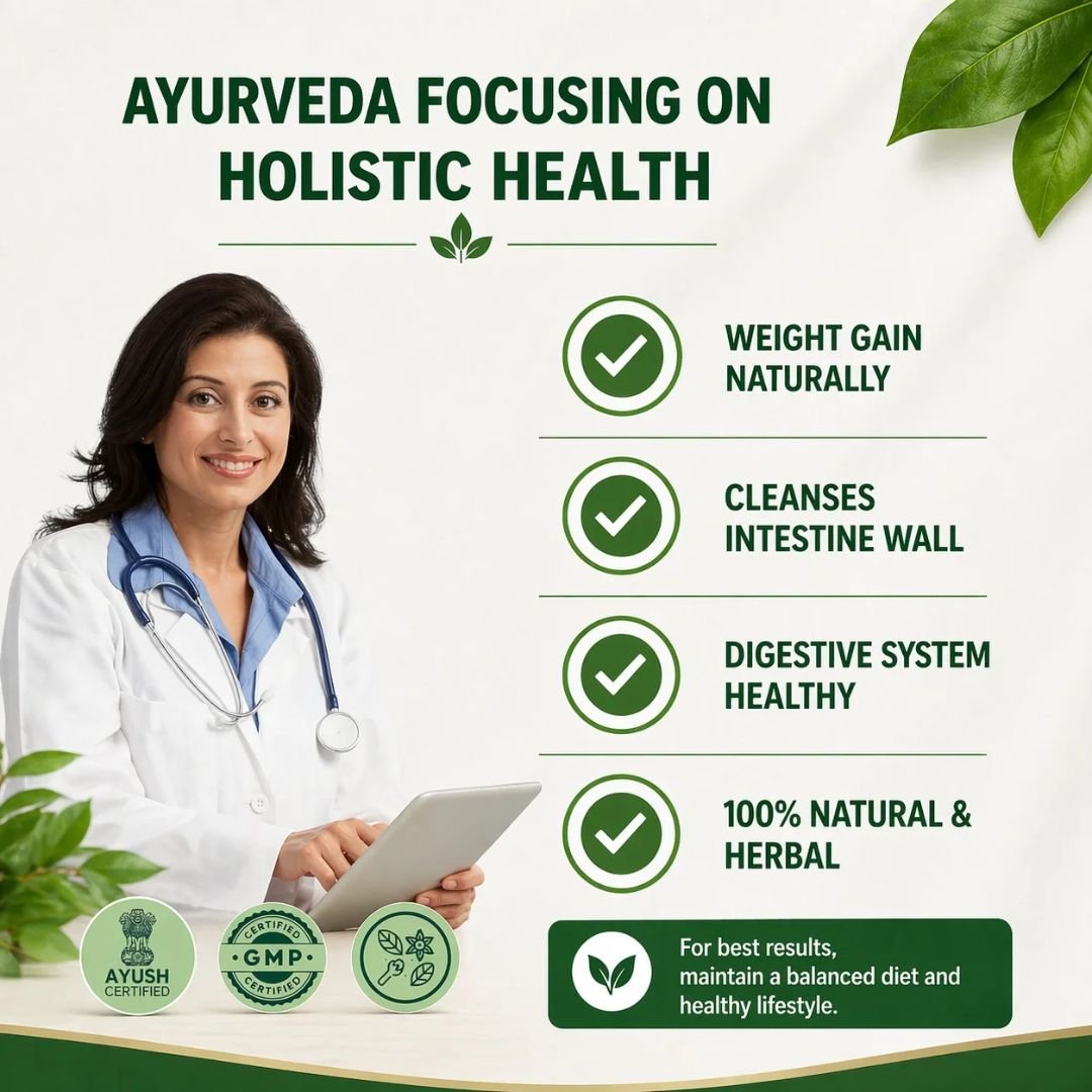 Carefully crafted with powerful, plant-based and organic herbs, this Ayurvedic formulation works naturally with your body. It is free from harmful chemicals and supports safe, gradual weight gain without disturbing your body balance.