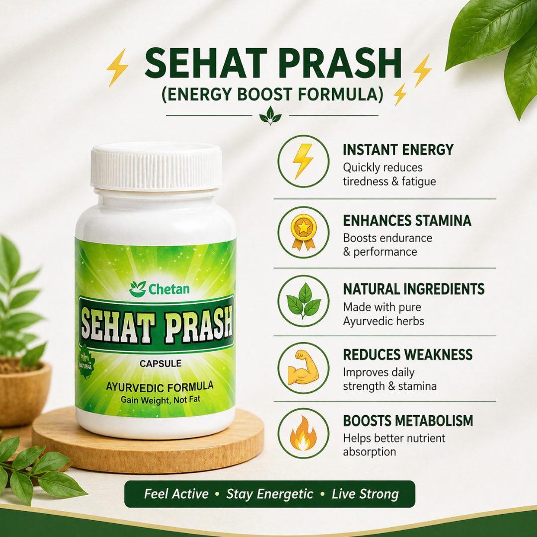 Sehat Prash helps improve energy levels throughout the day, reduces tiredness and weakness, and supports an active and energetic lifestyle.