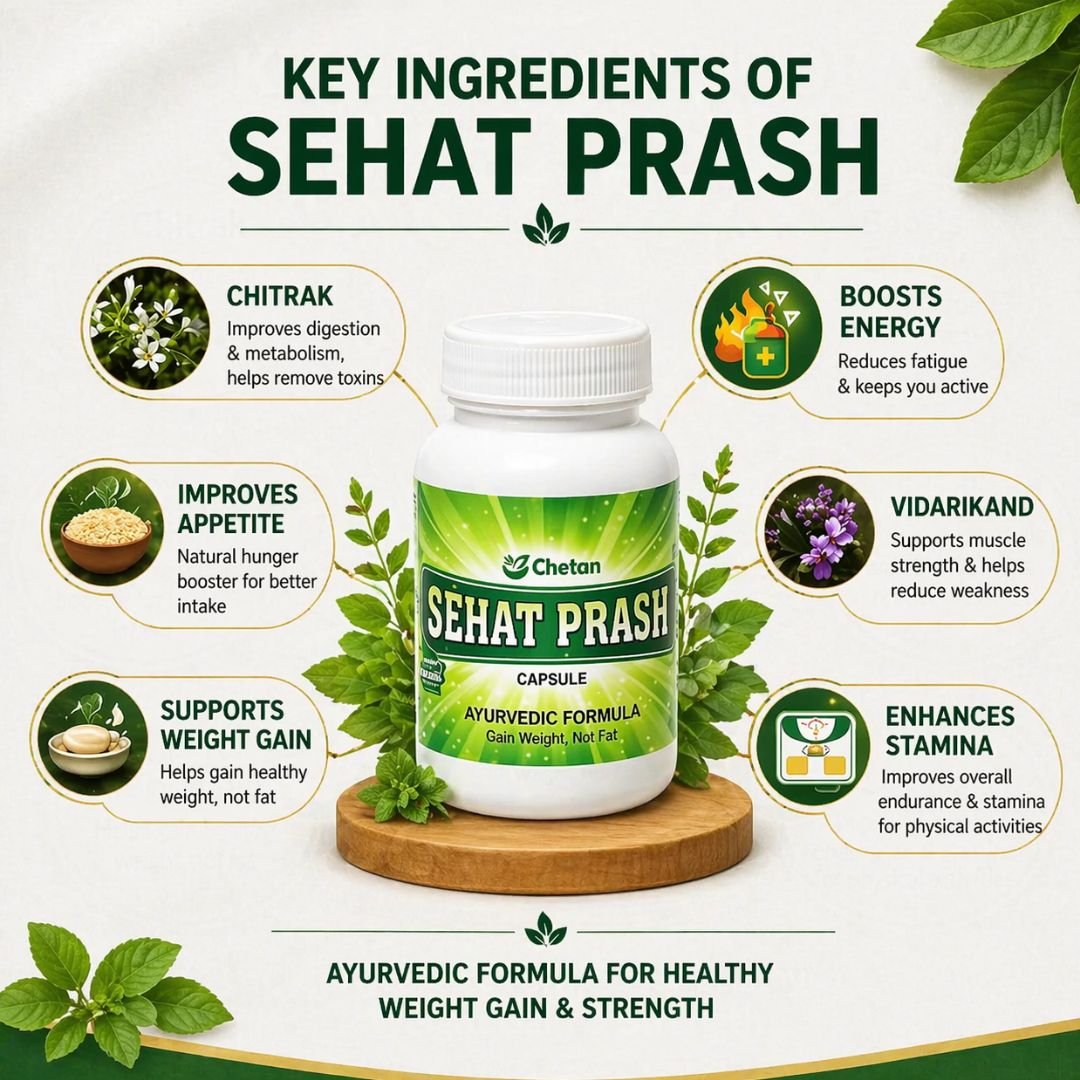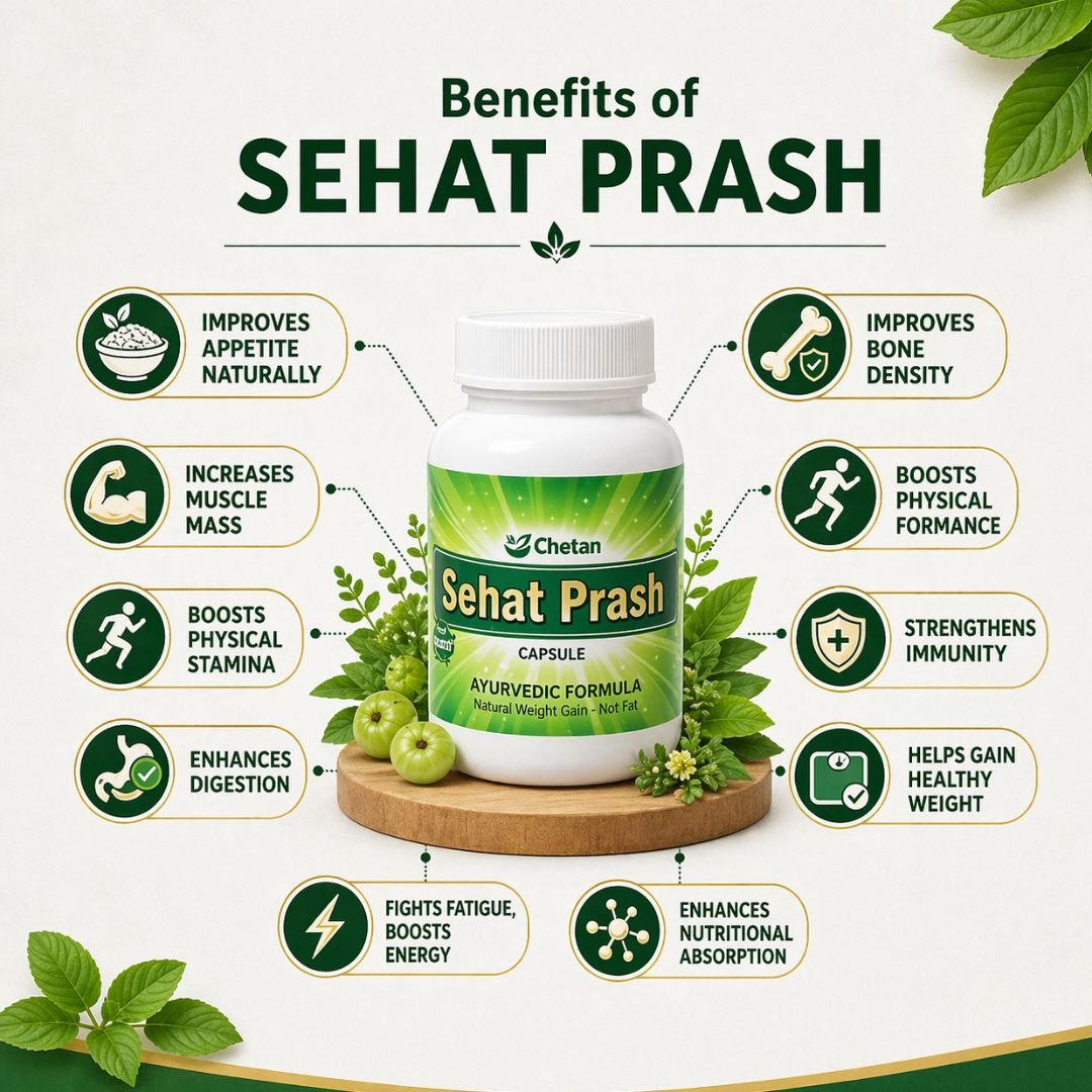 Sehat Prash is an Ayurvedic formulation that helps increase appetite, improves digestion, and supports healthy weight gain by enhancing your body’s nutrient absorption.